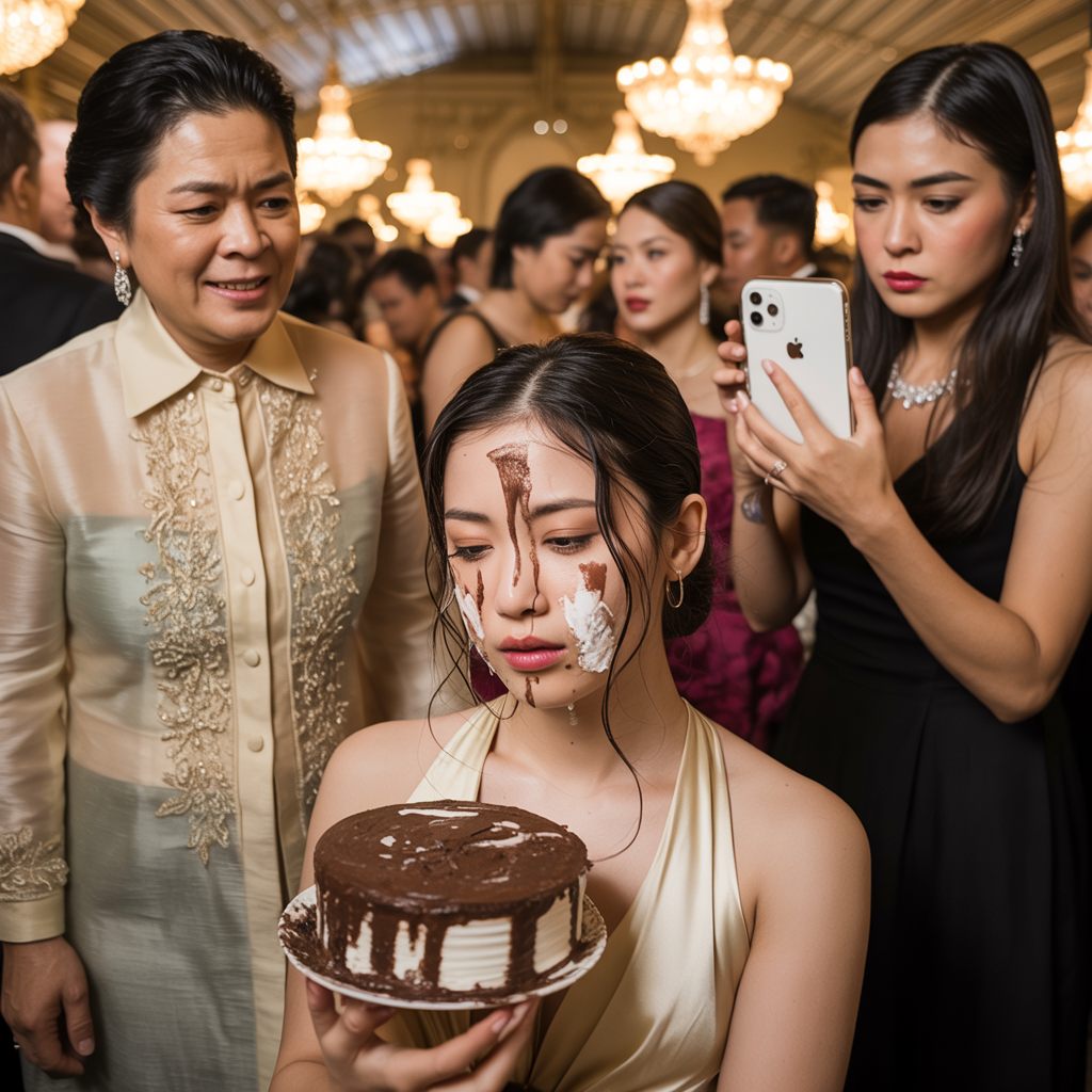 Tumulong ako para iwas-gulo. Pero bago ko mahawakan ang plato, kumuha si Donya Patricia ng isang malaking slice ng cake at… BOOM! Isinubsob niya ito sa mukha ko. Sa harap ng lahat.